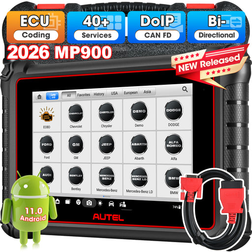 from Original price €949,00from Original price €949,00Original price €949,00from €749,00from €749,00Current price €749,00| /Autel Maxipro MP900BT Wireless Diagnosis Scanner丨8'' Screen /Advanced ECU Coding丨Bi-Directional Control丨Multi-Brand All System Diagnosis丨40+ Service丨Multi-LanguageAutel MaxiPRO MP900BT 2026 Newest Auto diagnostic tool MP900BT , upgrade of the MP808/MS906.Features a powerful ✅Android 11.0✅8 inches screen/128...
